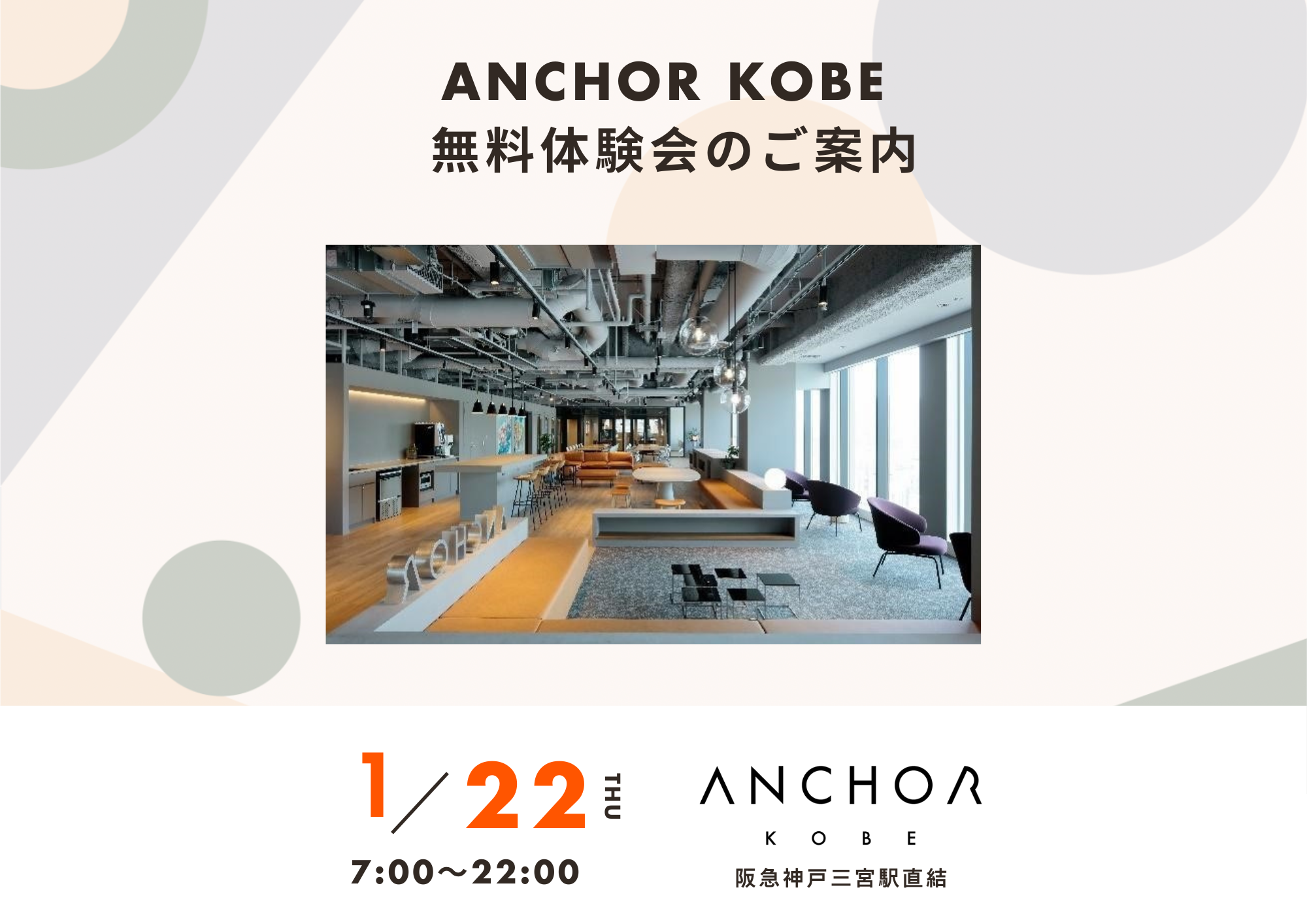 ビジネススクエア「ANCHOR KOBE(アンカー神戸)」は、さらなる共創の担い手を求め、無料体験会を下記の日程で開催します。