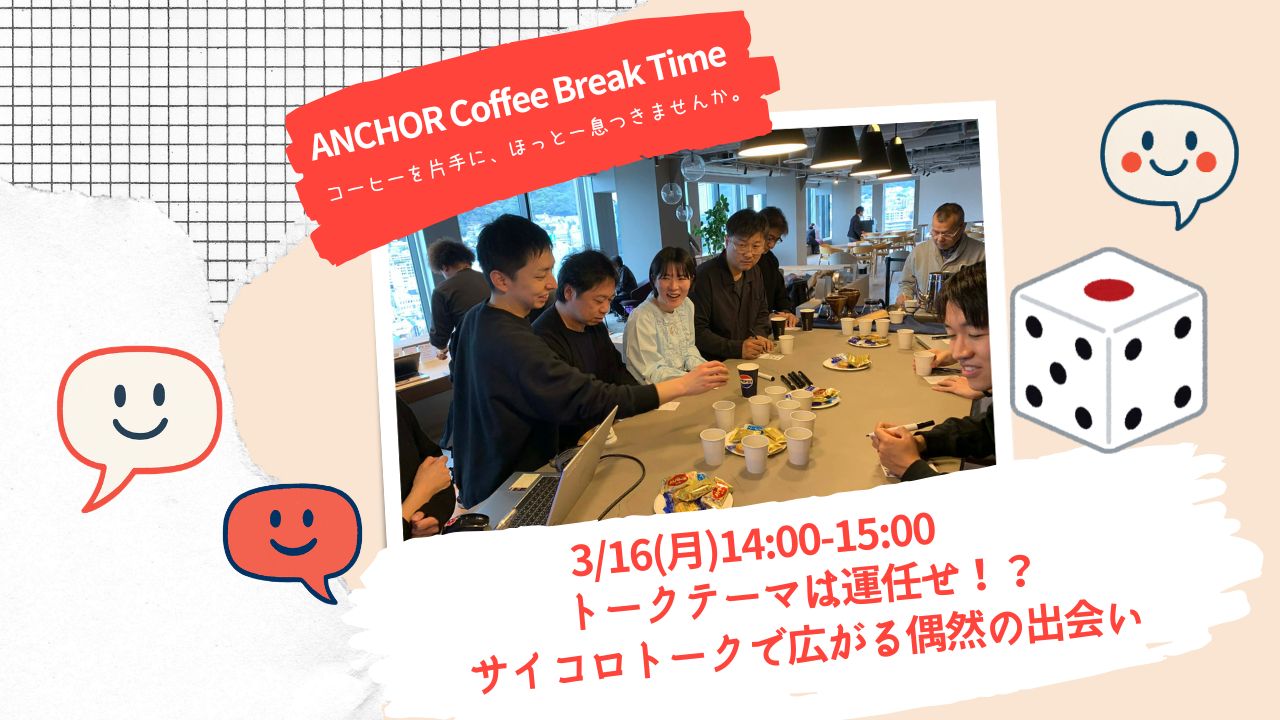 “ANCHOR Coffee Break Time”とは、会員同士、お昼ならコーヒー、夕方はビールなどを飲みながらゆるっと交流する時間!
